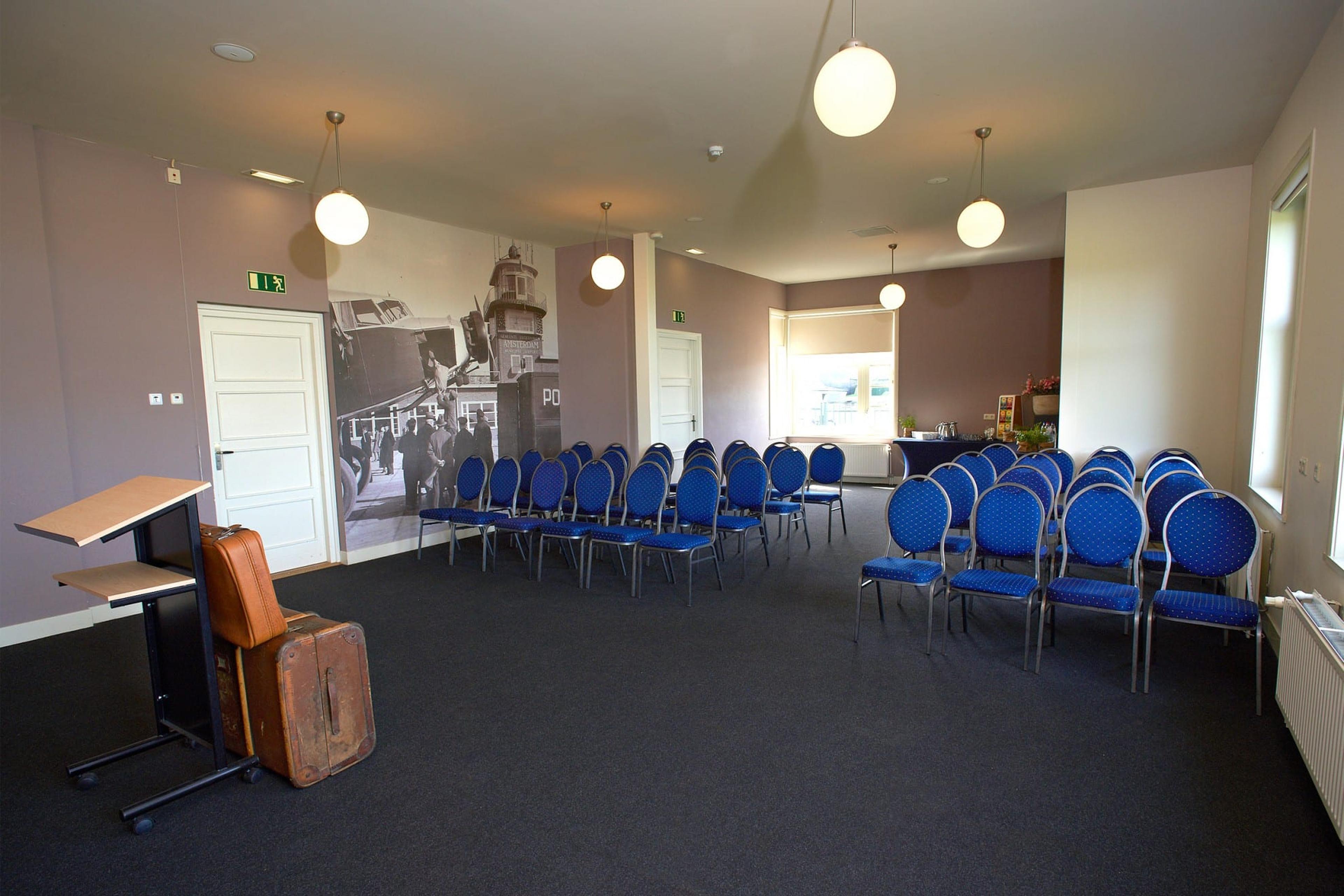 The Briefing Room is located in the 1928 wing of the Schiphol Building. The room can accommodate up to 50 people and is ideal for meetings, presentations, lectures and workshops. The Briefing Room can easily be combined with the other rooms in the unique Schipholgebouw 1928.