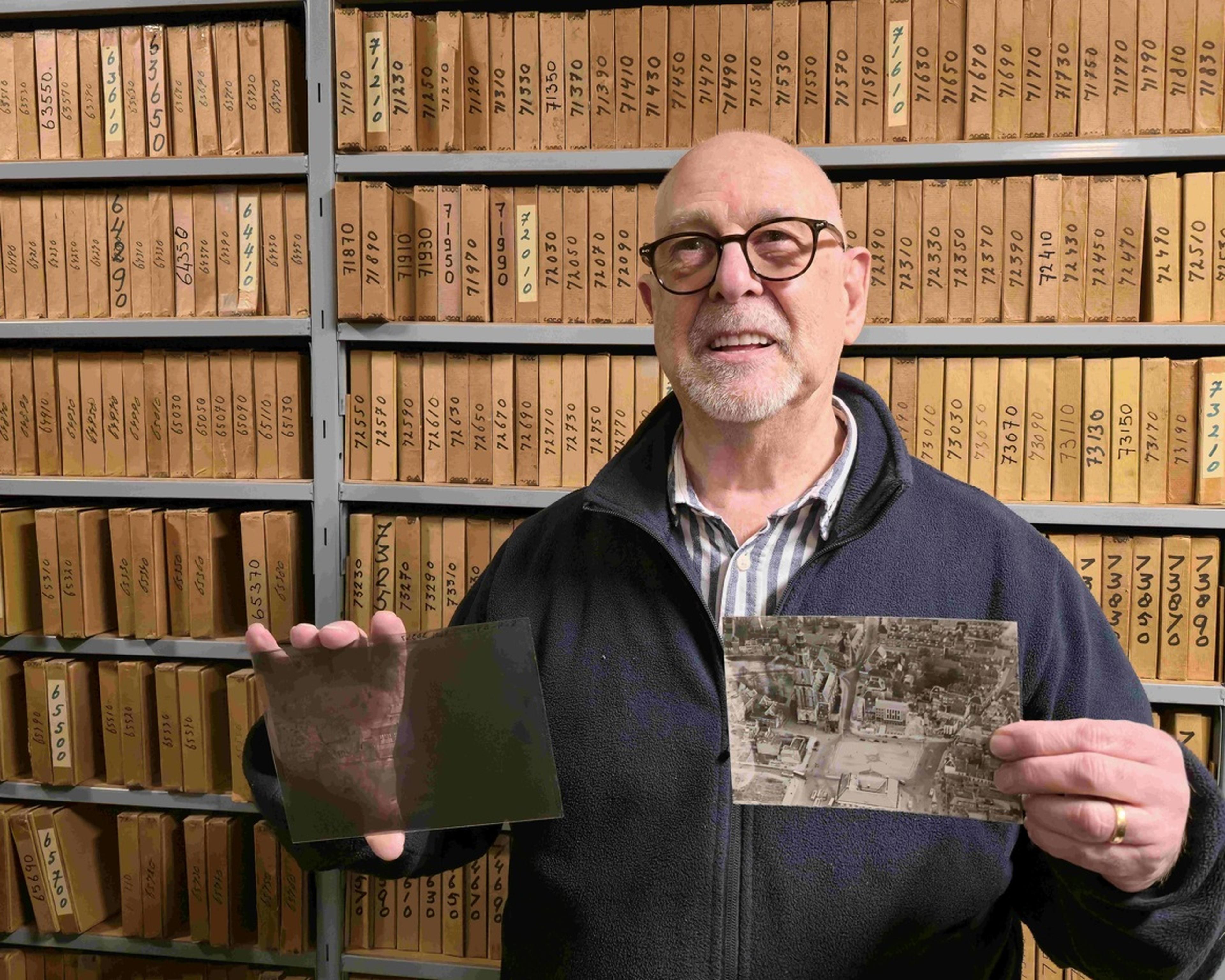 Aviodrome-vrijwilliger Martin Smit (73) is verantwoordelijk voor het luchtfotoarchief. Hij scant wekelijks diverse glasnegatieven en verwerkt alle aanvragen. Hij legt uit: “Door alles ook digitaal vast te leggen, blijft een groot deel van de Nederlandse geschiedenis beschikbaar voor het nageslacht."