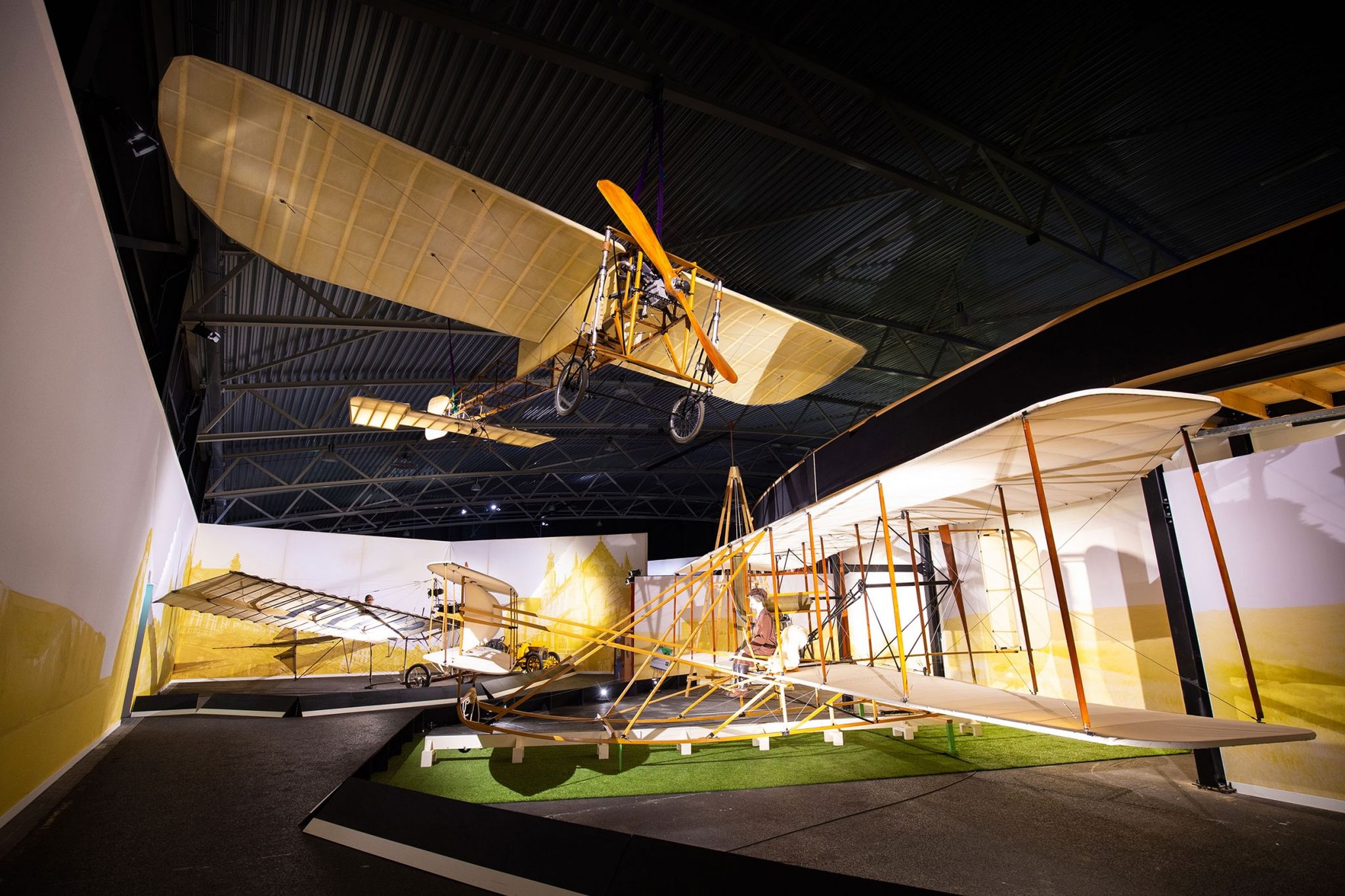Het lukte de eerste gemotoriseerde vliegtuigen om te vliegen. De Wright Flyer, de Fokker Spin en de Bleriot zijn revolutionaire toestellen van echte pioniers. Toentertijd wisten mensen niet wat ze zagen en was vliegen een attractie.